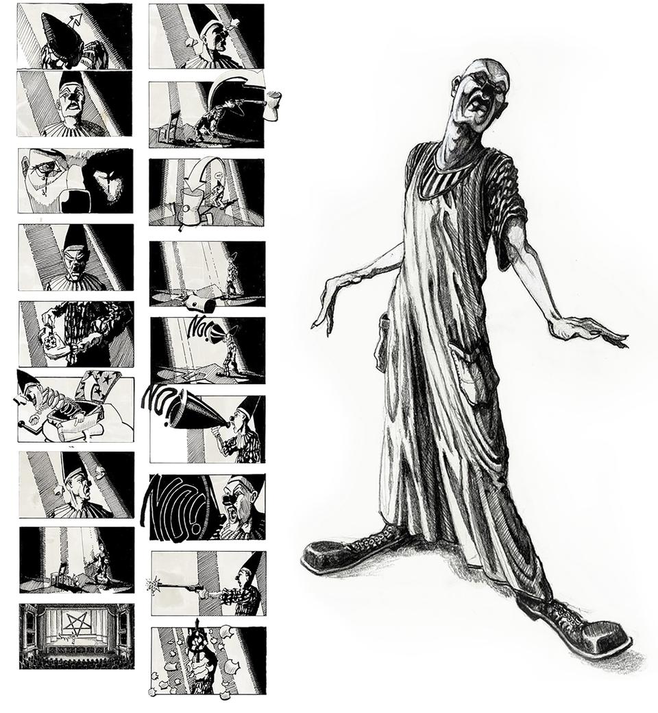 In a surreal world the Protagonist, a clown projected onto a huge screen of a picturesque cinema as a metaphor for the subconscious mind of the audience, undergoes an existential development. He dreams of his counterpart, the white-face clown, and finally finds his true identity in the immortal archetype of the Trickster.