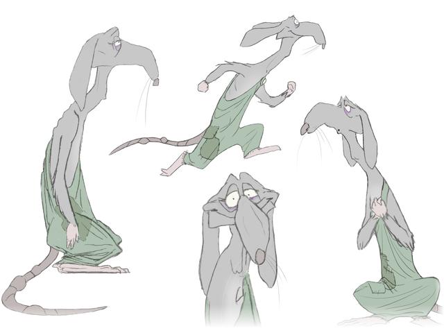 The short tells the story of Irwin (WT), a male street rat, who sings a love serenade to a dark window in a small dark ally. Unexpectedly he is being backed up by three mice friends, who show up unannounced with the intention of supporting him. Embarrassed and confused he continues singing, and eventually finishes his song with a proud bow. As he hopefully looks up to the window he realises that despite his honest love declaration no reaction was produced through his efforts. Disappointed, he turns to leave, but on the way undergoes an internal emotional crisis, unable to accept his defeat. In a desperate attempt he attempts to climb up the window and gets injured in result. After getting knocked out he slowly recovers with the aid of his loyal friends and returns to his senses, but as he attempts to leave the ally with his friends and return to the city, he realises that he is unable to go brake the force that initially brought him there.