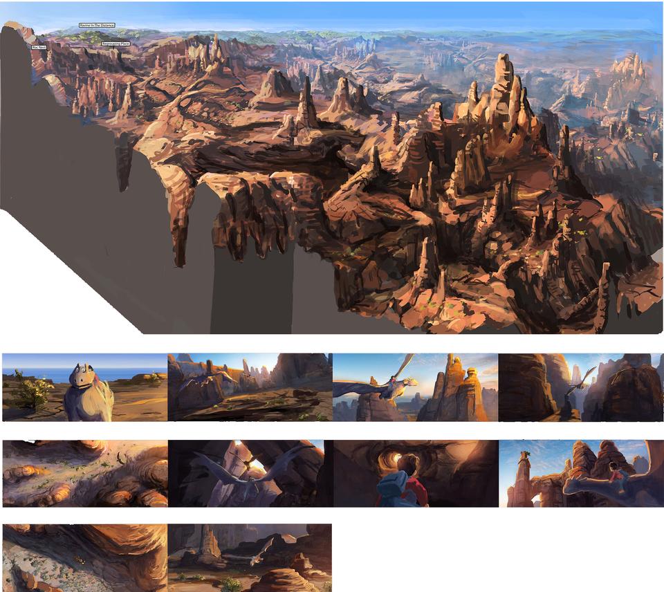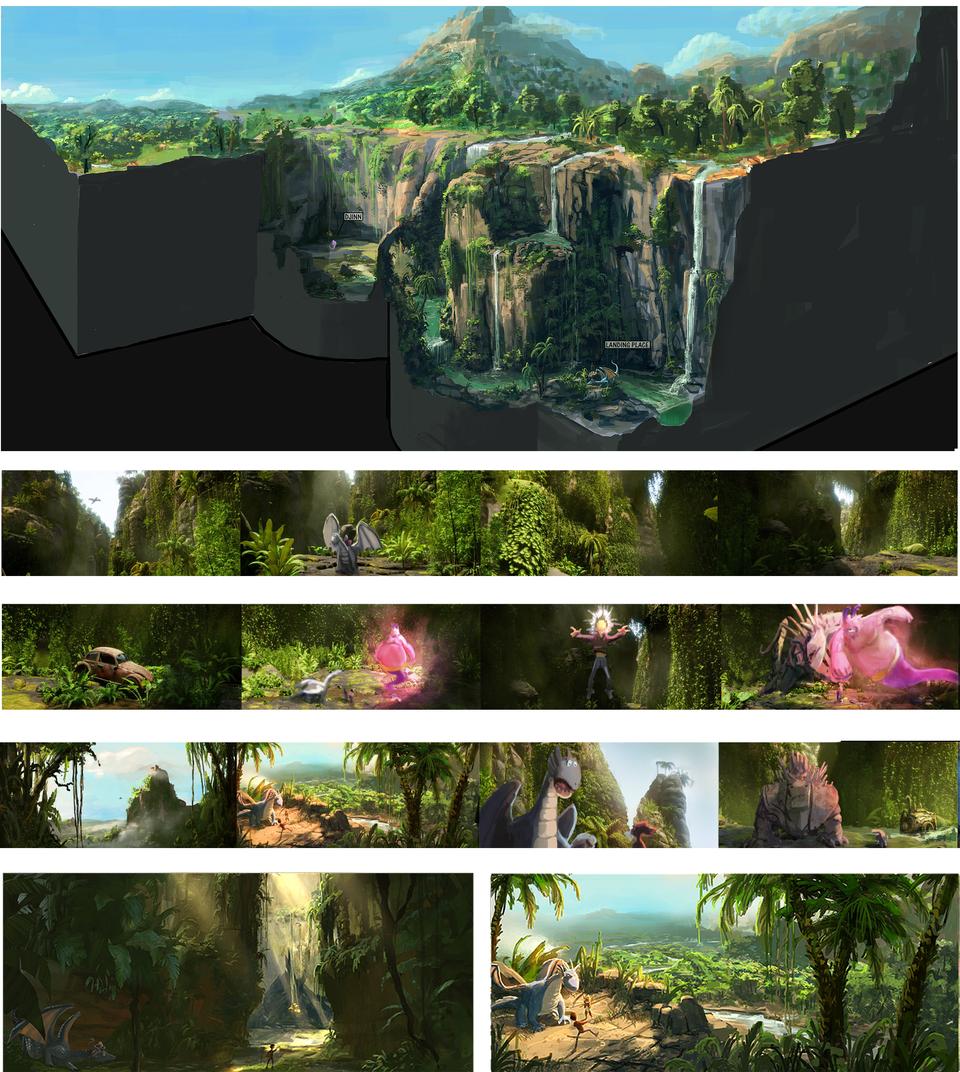 In addition to the 3D sets, over fifty matte paintings were created at Lumatic by the production design team, most of which spanning 360 degrees.