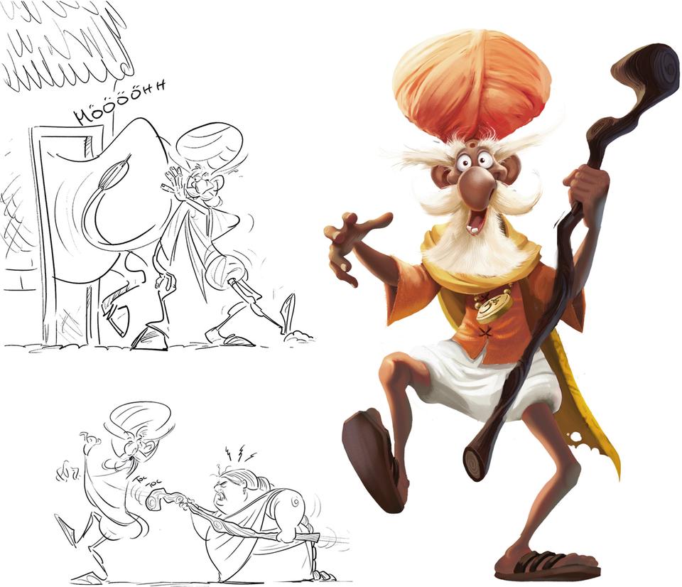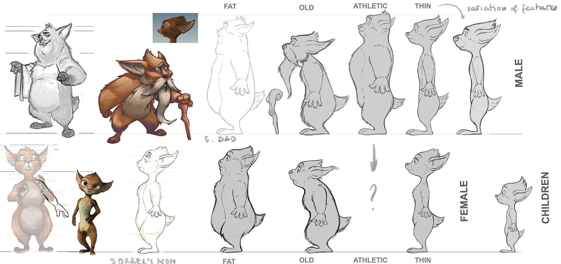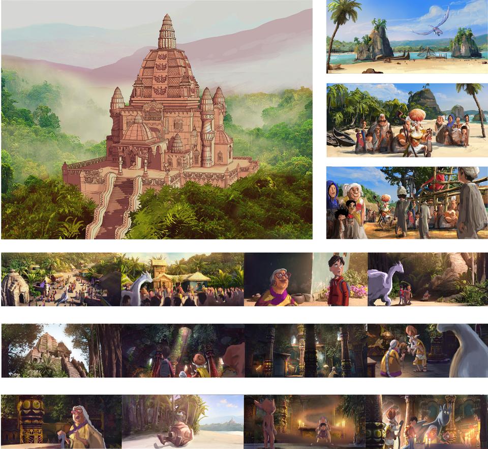 The creative goal regarding the production design was to hit the right balance between stylized and detailed designs. In order to minimize the discrepancy between stylized characters and photo-realistic set elements, the large shapes that define the space of the set were reduced to a simple, recognizable form. On the other hand, the colors in the final color script were overdrawn for each individual set from the start in order to rule out an uncanny valley effect.
