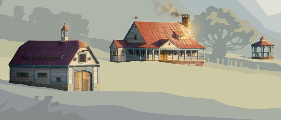 The story ends with a short sequence in which the professor's estate is shown, where he lives in harmony and contentment with his family and the mythical creatures. We see Ben, who was taken in by the professor and how they wave goodbye to the dragons on their last trip to the Rim Of Heaven. In terms of landscape, the set is based on certain coastal regions of New Zealand. The property is characterized by the American country house style.