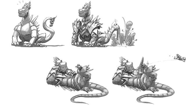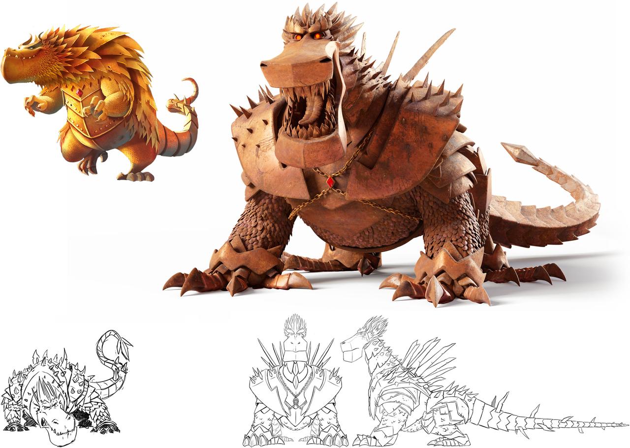 After the arduous odyssey through world history, our heroes land on a barren stretch of coast. Here Sorrel is kidnapped by a huge bird of prey and an action-packed chase begins. Right from the start, the set was designed as a kind of natural obstacle course. Since the bird of prey is reminiscent of a giant bald eagle, the decision to design the set in the style of the Grand Canyon in Arizona was only an obvious one. The challenge for the layout artists was to design the chase in such a way that the viewer gets the feeling of flying higher and higher until Sorrel plunges into the depths at the highest point to be rescued by Firedrake just above the bottom. For this purpose, a library of modular layout geometries of the rock formations was built, which could be moved as desired. The reddish-brown rock formations stand in stark contrast to the colors of the following set.
